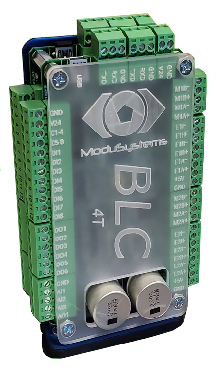 The BLC-4T is a 4 Axis Modular Stepper Motor Controller with Integrated Amplifiers most appropriates sized to drive smaller stepper motors (NEMA 06 through NEMA 23).