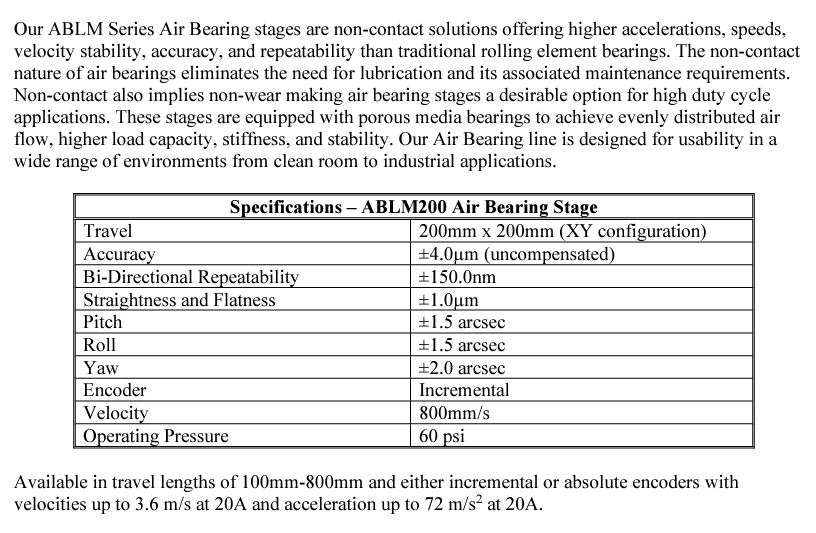 Air Bearing Systems higher accelerations, speeds, velocity stability, accuracy, and repeatability Category: Multi Axis Air Bearing