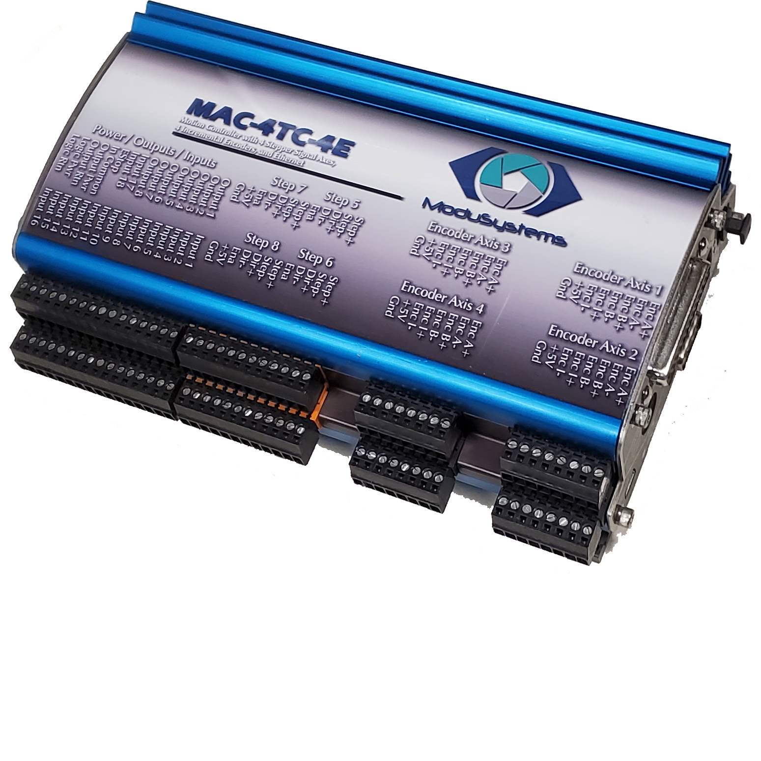 The MAC Fixed Axis Count Multi-Axis Motion and Machine Controllers are ModuSystems’ highest performance products. Whether the application is simple point-to-point motion, complex linear or circular interpolation, or even customizable Robot Kinematics; the MAC controllers are up to the task.