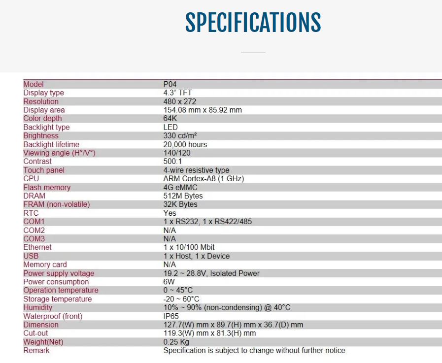 P04 HMI FEATURES