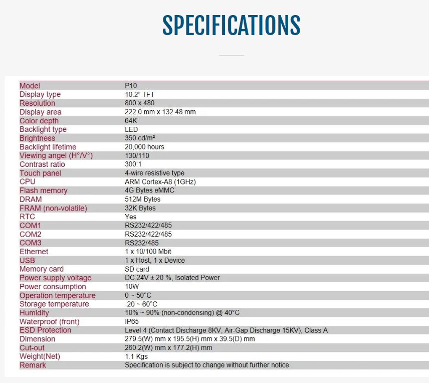 P10 HMI FEATURES