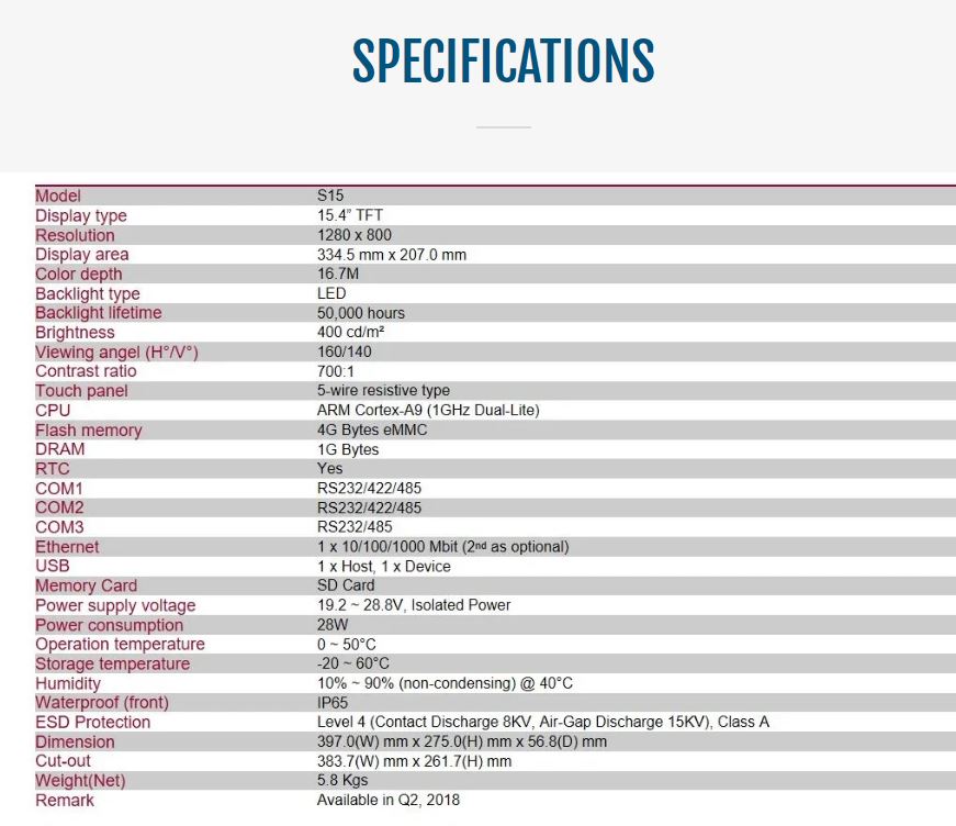 - Aluminum IP65 front bezel and steel chassis, fan-less design
