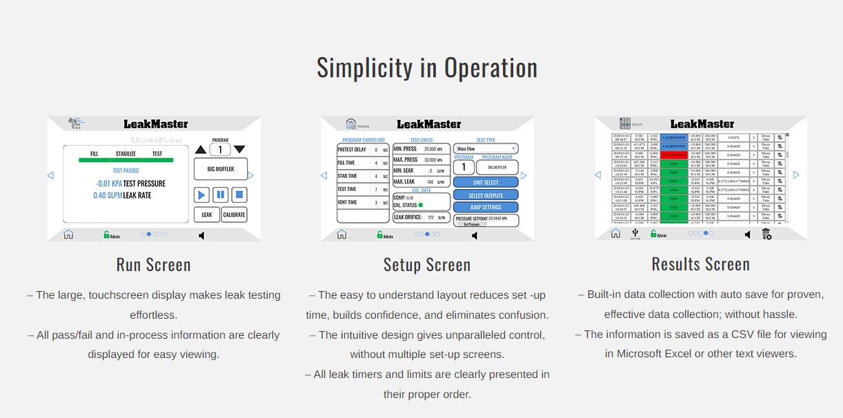 UltraFlow V3 RT is LeakMaster’s latest mass flow leak testing innovation, specifically designed for easy integration into small spaces, creating ease of viewing and operation for the user. When your application requires extremely fast cycle times, we’re confident in saying UltraFlow is the fastest, most repeatable way to leak test,…period! The UltraFlow is ideal for quickly testing large parts yet versatile enough to test small parts. Optional Ethernet/IP or Profinet module allows for seamless integration into PLC controls systems, eliminates I/O wiring, reduces start-up time and hardware cost. Provides ultimate control and the ability to capture valuable leak rate data for data collection systems, critical for today’s production environment.