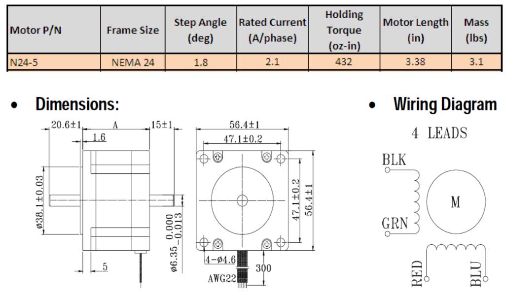 - 2.4″ Square NEMA 24 Stepper Motor