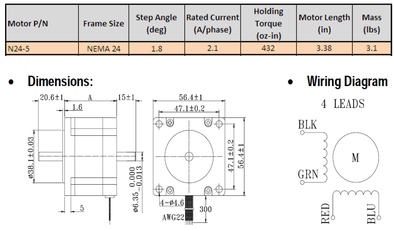 - Step Angle Accuracy = +/- 5%