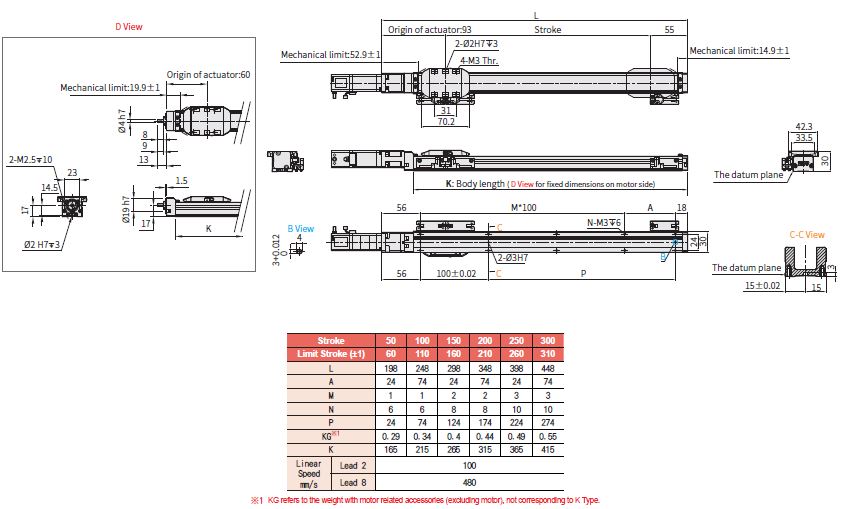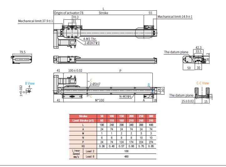 | Stroke Length BSS GT30x30 | 100, 150, 200 |