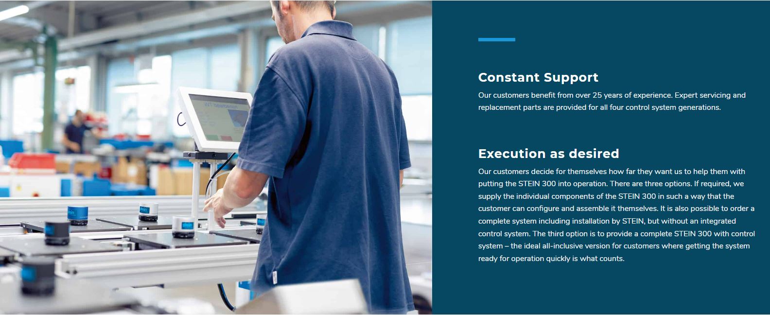 The STEIN 300 has a fixed place in over 3,800 factories. With a vast range of customers and in a wide variety of configurations. From a simple circuit right through to ERP connection or traceability functionality, each installation is custom-made for our customers using a standard toolkit.